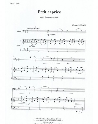 Petit Caprice Jérôme Naulais Basson et Piano Recueil + Partition
