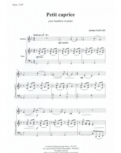 Petit Caprice Jérôme Naulais Hautbois et Piano Recueil + Partition