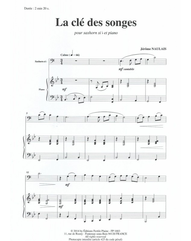 La Clé Des Songes Jérôme Naulais Euphonium Recueil