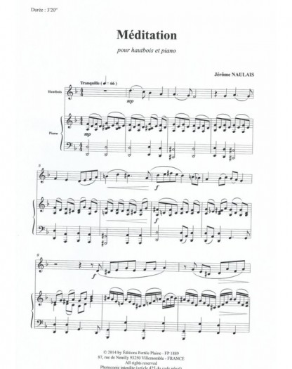 Méditation Jérôme Naulais Hautbois et Piano Recueil + Partition