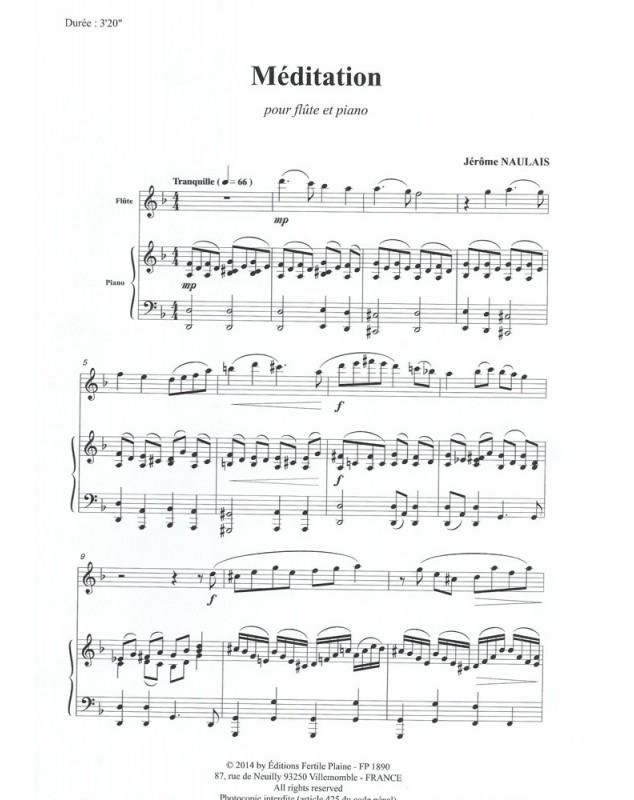Méditation Jérôme Naulais Flûte Traversière et Piano Recueil + Partition