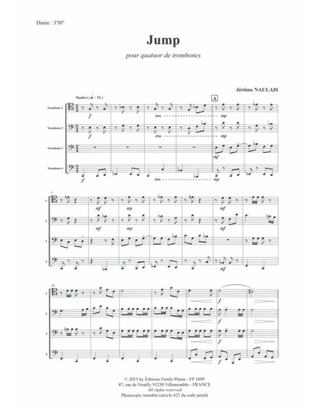 Jump Jérôme Naulais 4 Trombones Set de partitions
