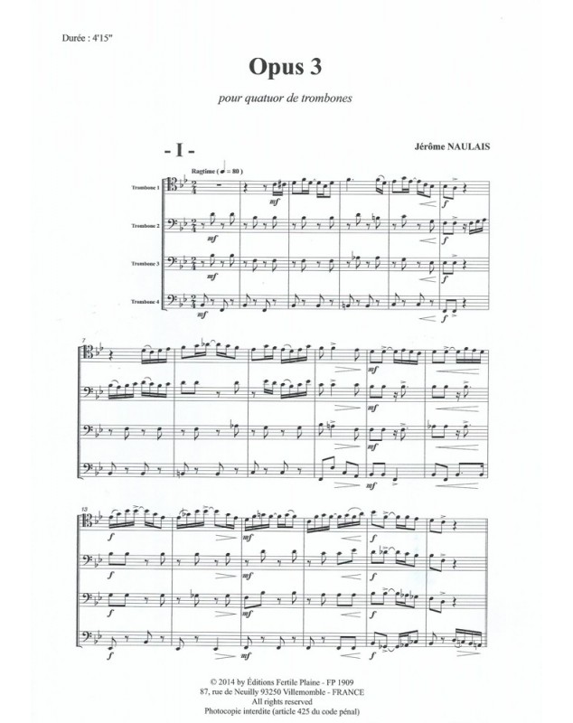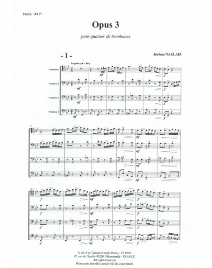 Opus 3 Jérôme Naulais 4 Trombones Set de partitions