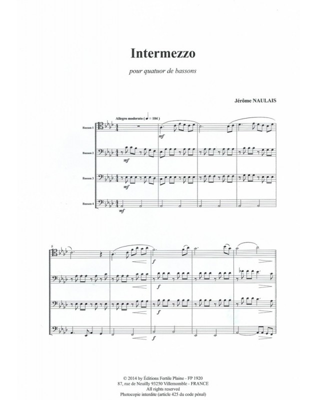Intermezzo Jérôme Naulais 4 Bassoons Set de partitions