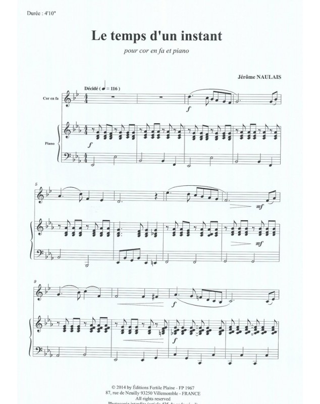 Le Temps D'un Instant Jérôme Naulais Cor et Piano Recueil + Partition
