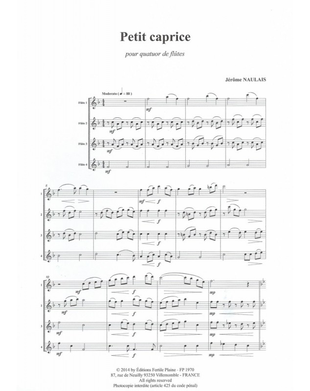Petit Caprice 4 Flûtes Jérôme Naulais 4 Flûtes Traversières Set de partitions