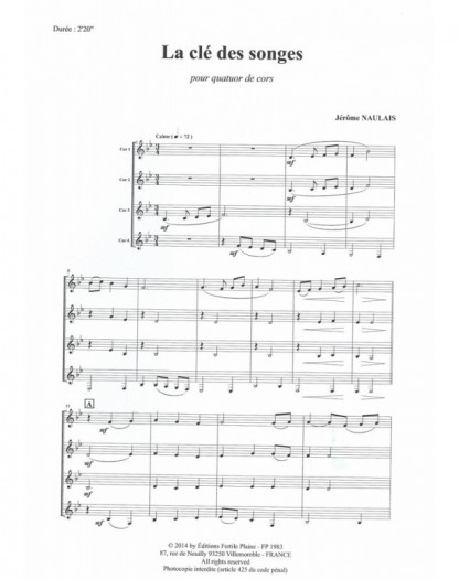 La Clé Des Songes Jérôme Naulais Horn Quartet Set de partitions