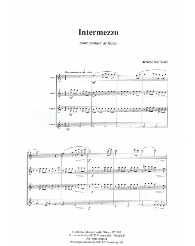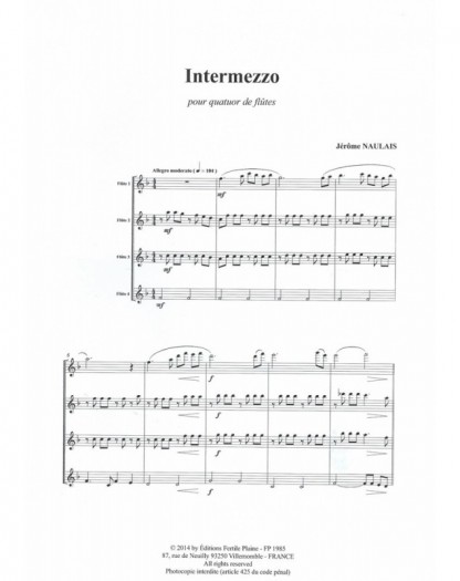 Intermezzo Jérôme Naulais 4 Flûtes Traversières Set de partitions