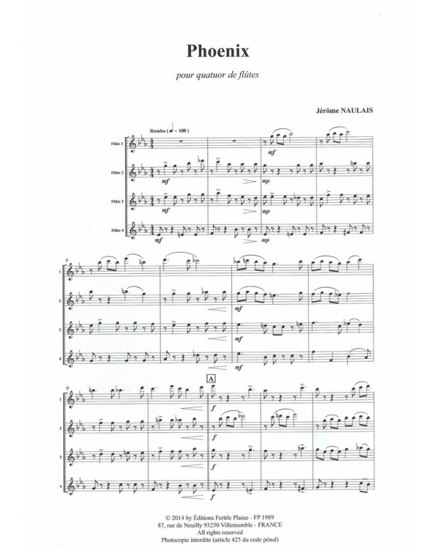 Phoenix Jérôme Naulais 4 Flûtes Traversières Set de partitions