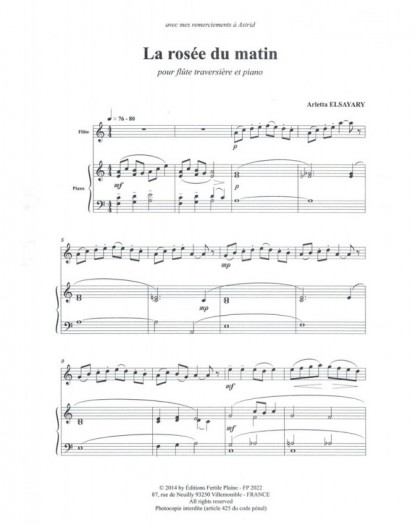 La Rosée Du Matin Arletta Elsayary Flûte Traversière et Piano Recueil + Partition