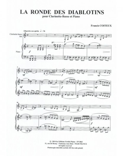 La Ronde Des Diablotins Francis Coiteux Bass Clarinet and Piano Recueil + Partition