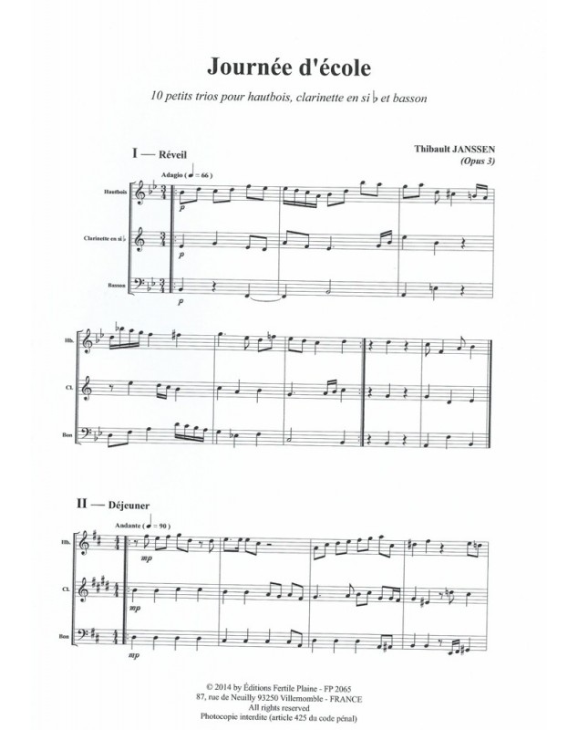 Journée D'école Thibault Janssen Oboe, Clarinet and Bassoon Set de partitions