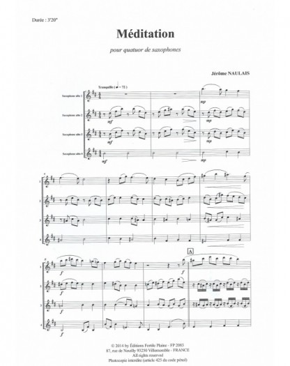 Méditation Jérôme Naulais 4 Saxophones Recueil