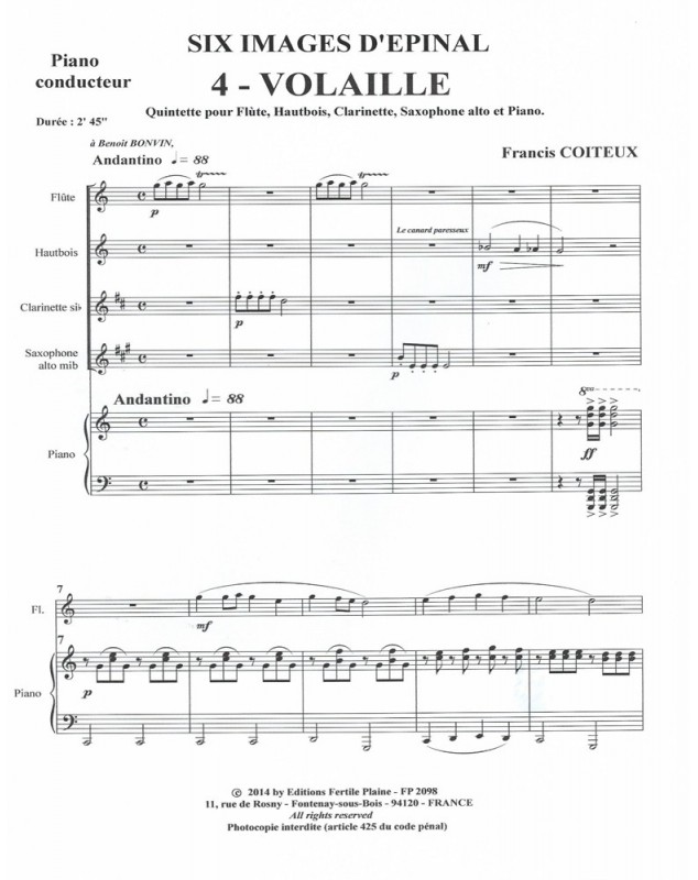 Imagees d'Epinal N° 4: Volaille Francis Coiteux Wood Wind Ensemble Conducteur