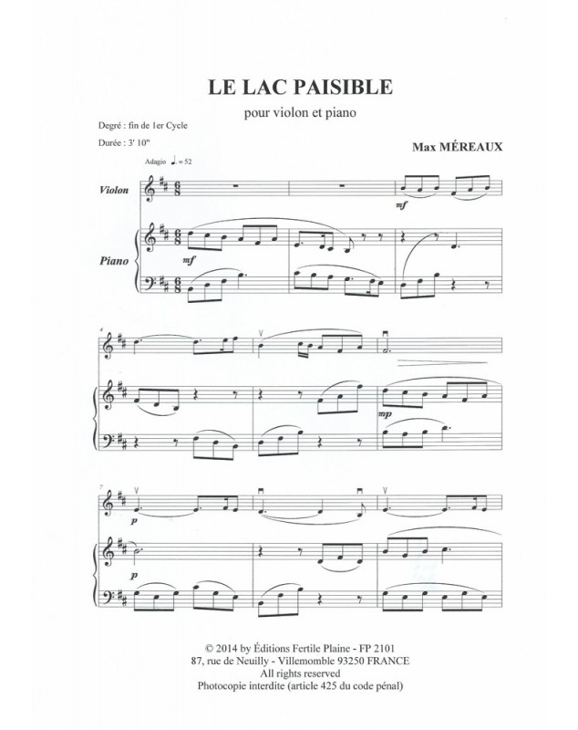 Le Lac Paisible Max Mereaux Violon et Piano Recueil + Partition