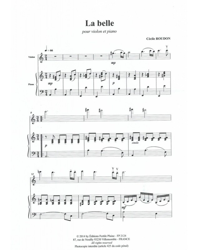 La Belle Cécile Roudon Violon et Piano Recueil + Partition