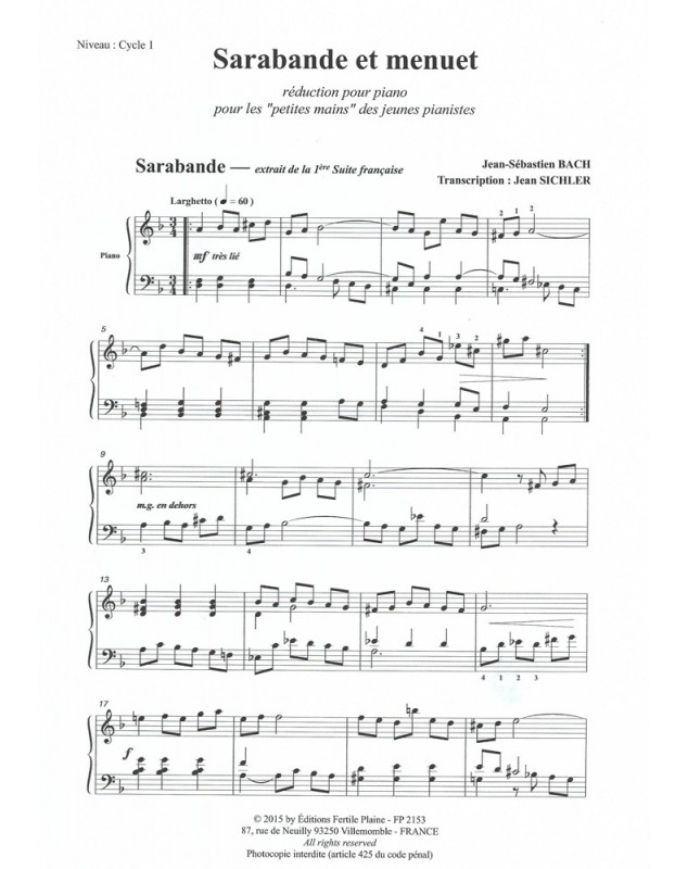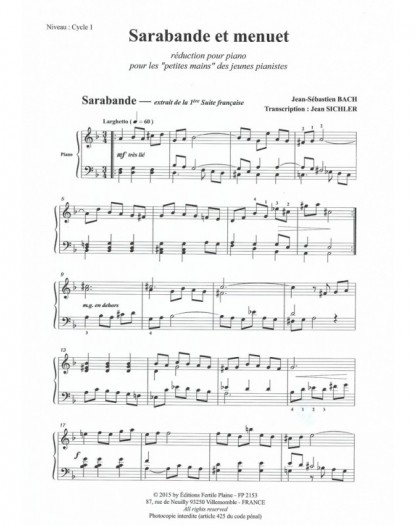 Sarabande et Menuet Jean Sichler Piano Recueil