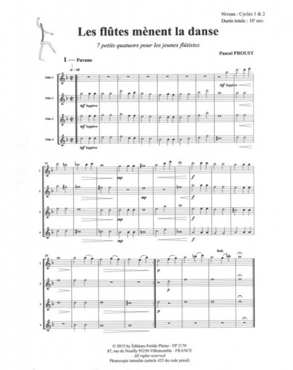 Les Flûtes Mènent La Danse Pascal Proust 4 Flûtes Traversières Set de partitions