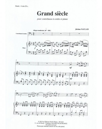 Grand Siècle Jérôme Naulais Double Bass and Piano Recueil + Partition