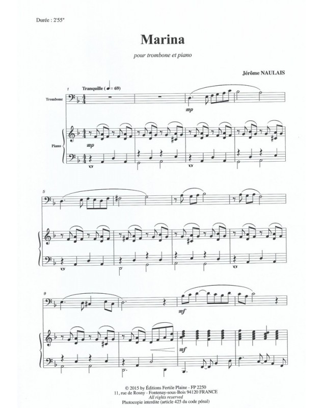 Marina Jérôme Naulais Trombone et Piano Recueil + Partition
