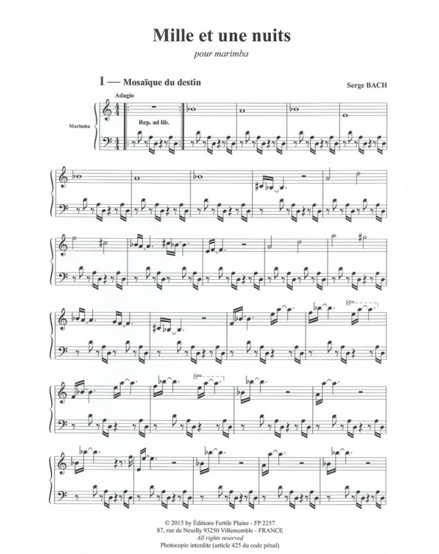 Les Mille et Une Nuits Serge Bach Marimba Recueil