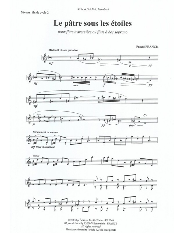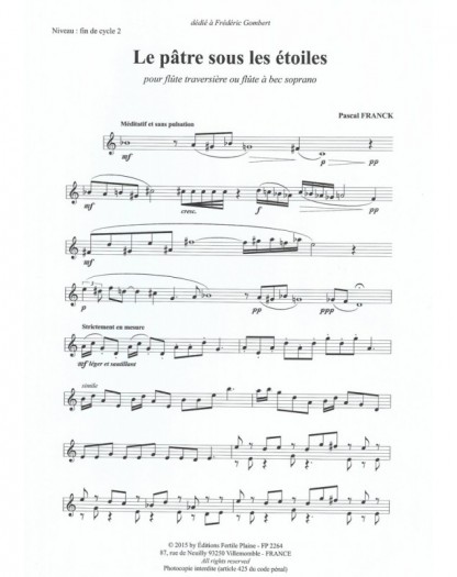 Le Pâtre Sous Les Étoiles Pascal Franck Soprano Recorder Recueil
