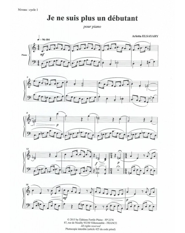 Je Ne Suis Plus Un Débutant Arletta Elsayary Piano Recueil