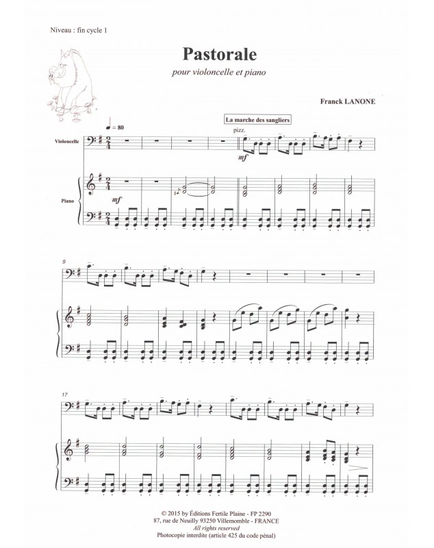 Pastorale Franck Lanone Violoncelle et Piano Recueil + Partition