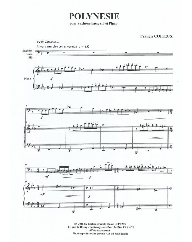 Polynesie Francis Coiteux Tuba et Piano Recueil + Partition