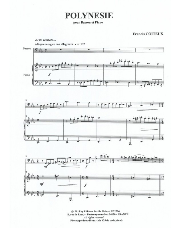 Polynesie Francis Coiteux Basson et Piano Recueil + Partition