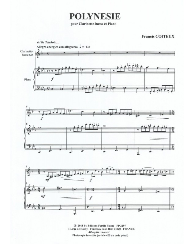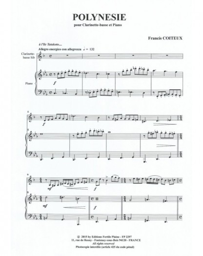 Polynesie Francis Coiteux Bass Clarinet and Piano Recueil + Partition
