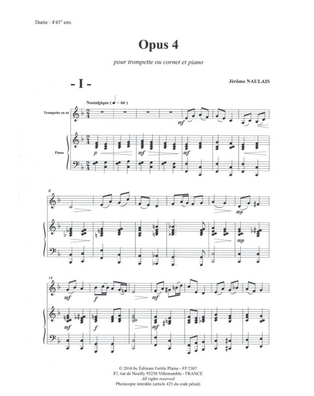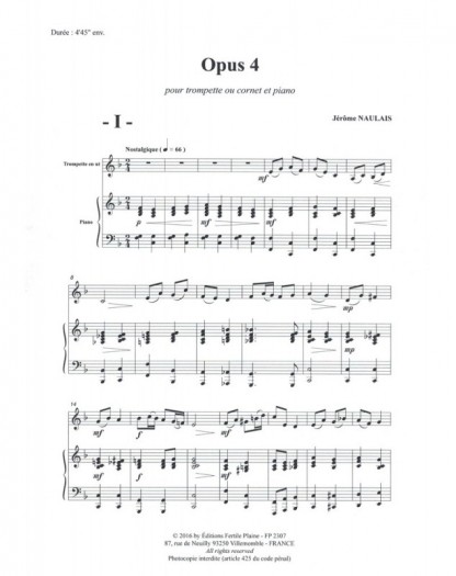 Opus 4 Jérôme Naulais Trompette et Piano Recueil + Partition