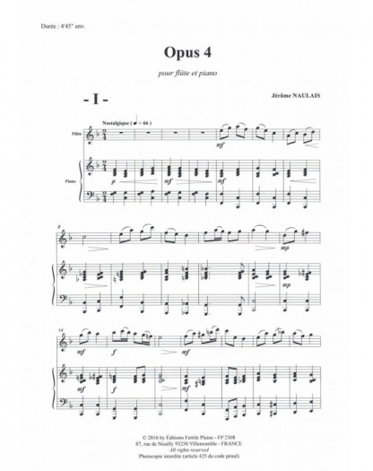 Opus 4 Jérôme Naulais Flûte Traversière et Piano Recueil + Partition