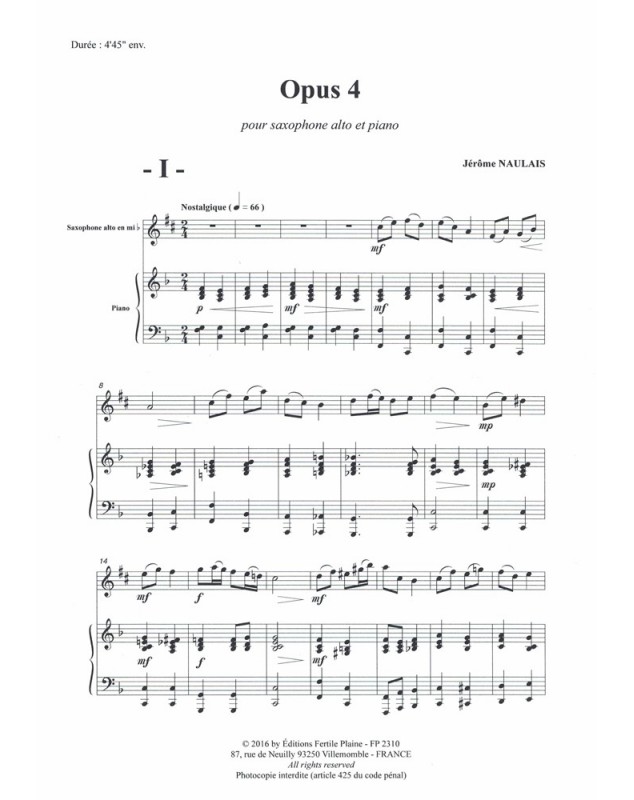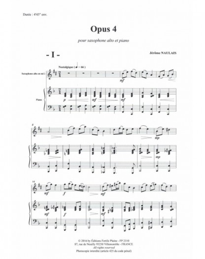 Opus 4 Jérôme Naulais Saxophone et Piano Recueil + Partition