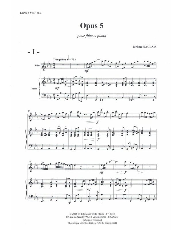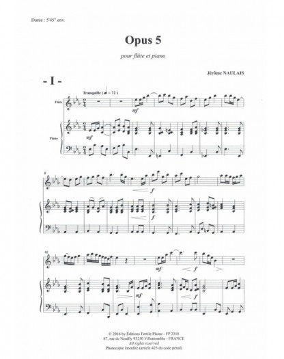 Opus 5 Jérôme Naulais Flûte Traversière et Piano Recueil + Partition
