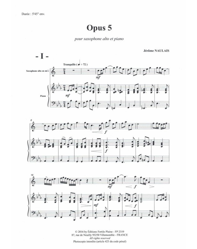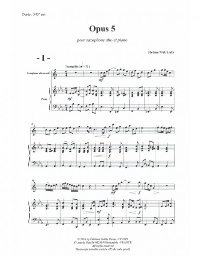 Opus 5 Jérôme Naulais Saxophone et Piano Recueil + Partition