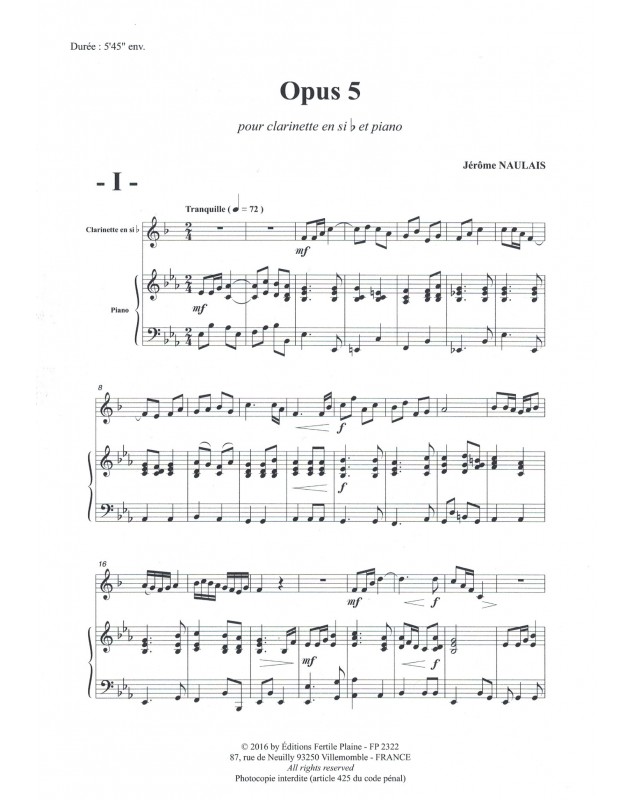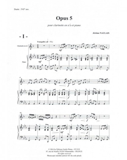 Opus 5 Jérôme Naulais Clarinette et Piano Recueil + Partition