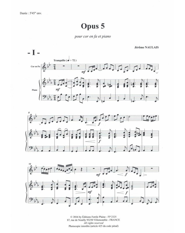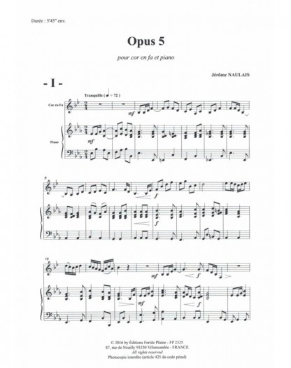 Opus 5 Jérôme Naulais Cor et Piano Recueil + Partition