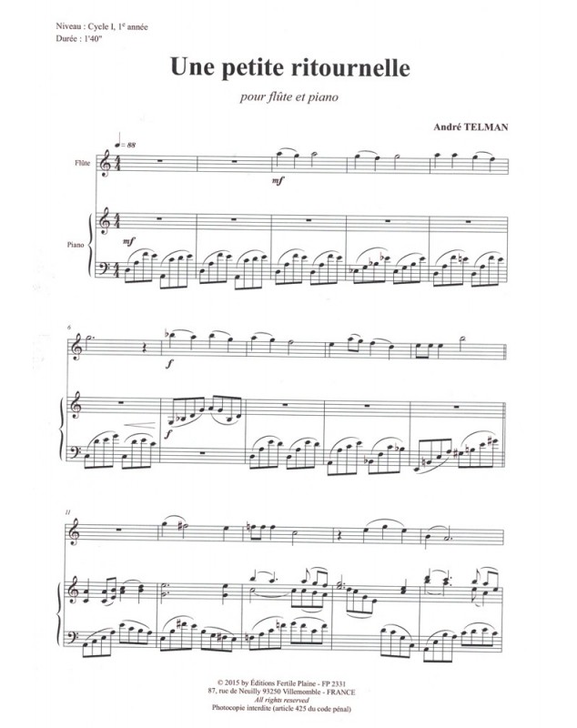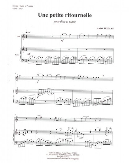 Ritournelle André Telman Flûte Traversière et Piano Recueil + Partition