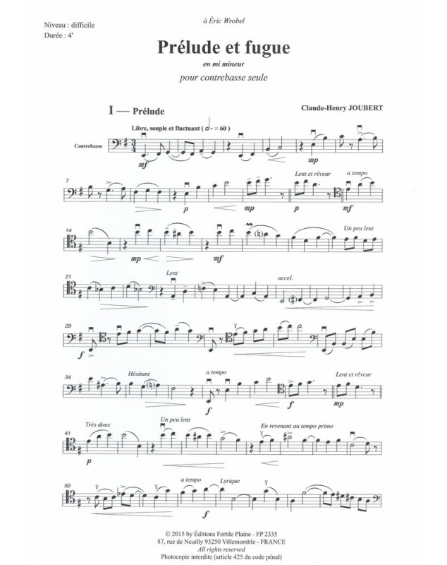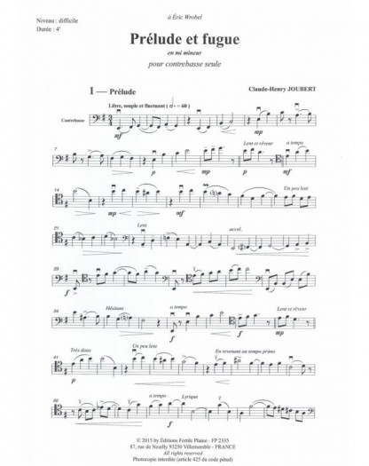 Prélude et Fugue Claude-Henry Joubert Double Bass Recueil