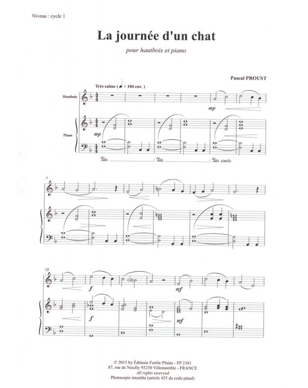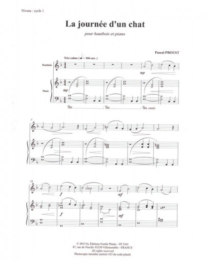 Journée D'un Chat Pascal Proust Hautbois et Piano Recueil + Partition