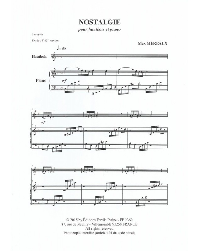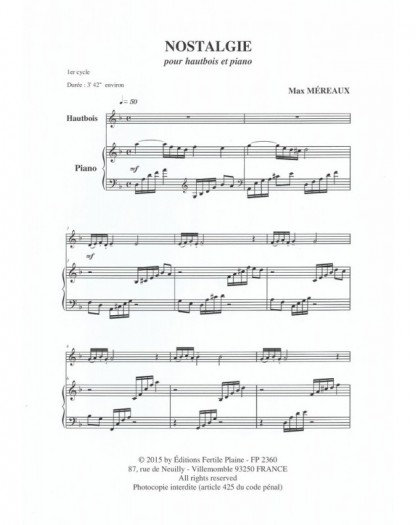 Nostalgie Max Mereaux Hautbois et Piano Recueil + Partition