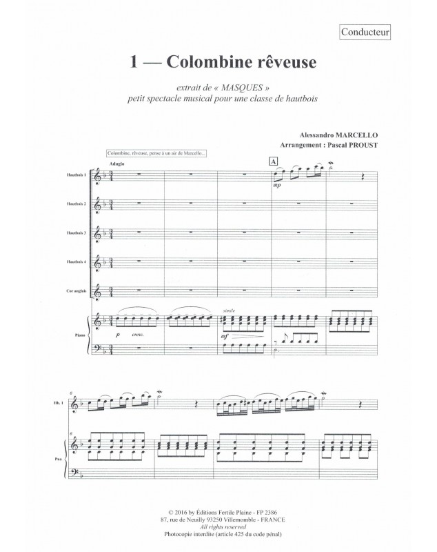 Masques Pascal Proust 4 Oboe's Set de partitions