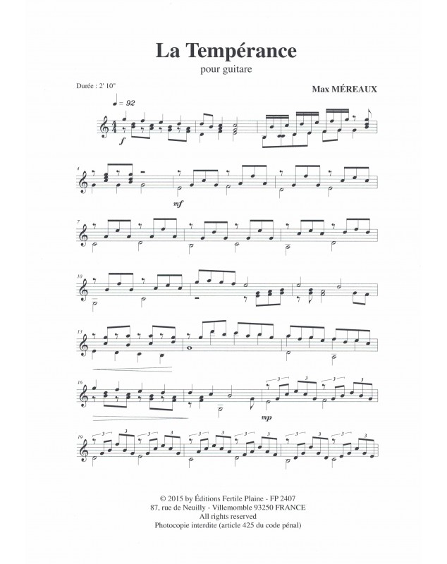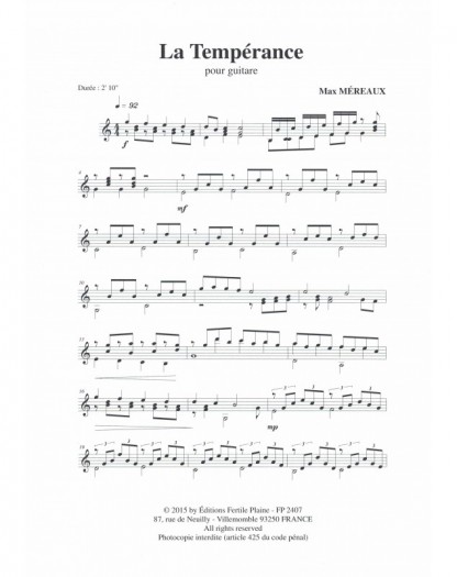 La Tempérance Max Mereaux Guitare Recueil