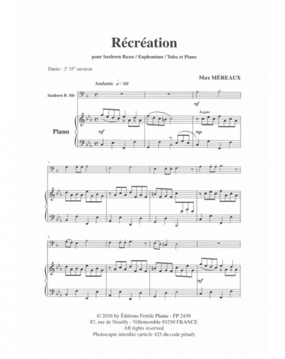Récréationj Max Mereaux Tuba et Piano Recueil + Partition