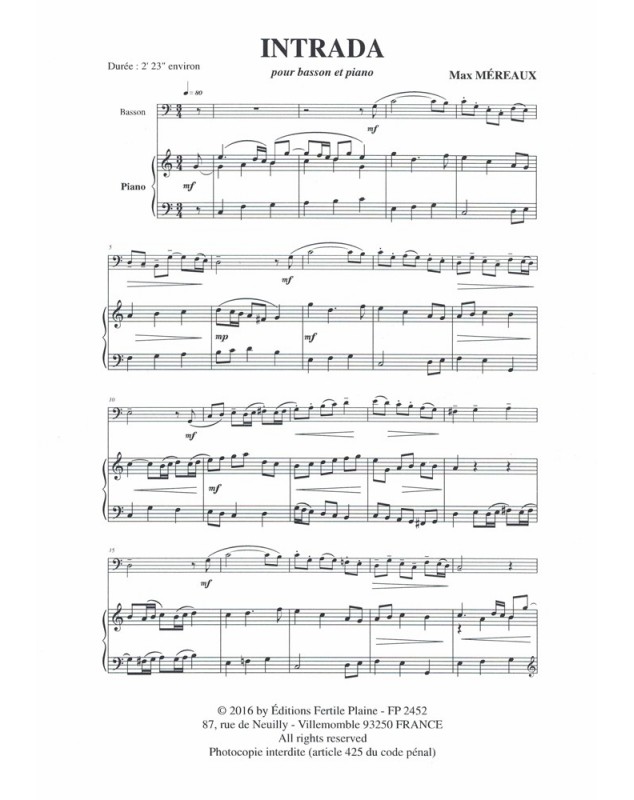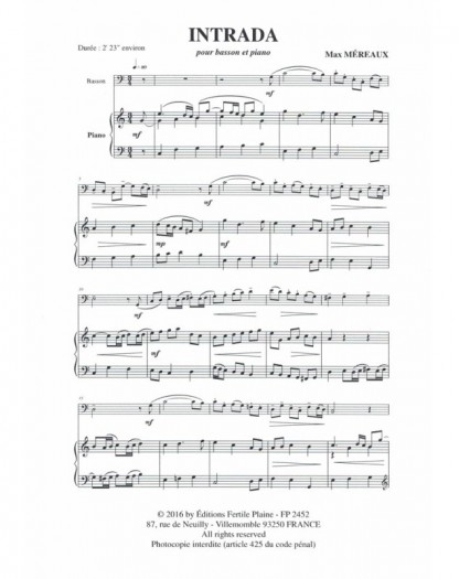 Intrada Max Mereaux Basson et Piano Recueil + Partition