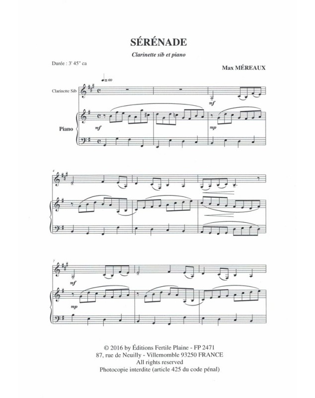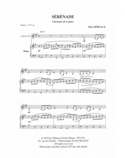 Serenade Max Mereaux Clarinette et Piano Recueil + Partition