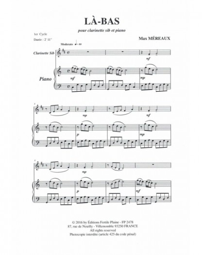 La-Bas Max Mereaux Clarinette et Piano Recueil + Partition