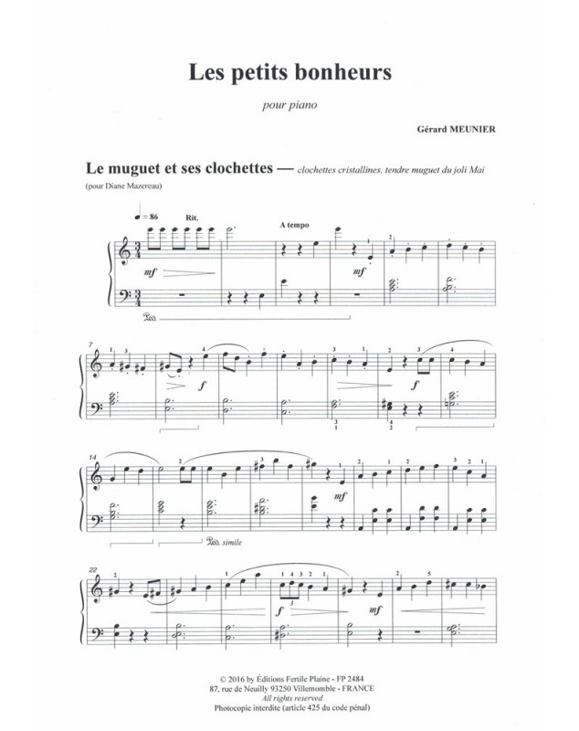 Les Petirs Bonheurs Gérard Meunier Piano Recueil