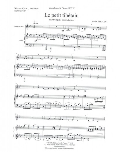 Le Petit Tibétain André Telman Trompette et Piano Recueil + Partition